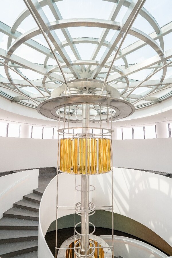 The museum’s signature highlight is the world’s largest AI fragrance-blending installation, an architectural spectacle stretching across five floors. Hundreds of crystal-clear essence vessels hang in a radial constellation around a spiraling staircase, catching and refracting light so that every ascent feels cinematic—almost like walking through a nebula made of scent. More than visual poetry, this installation marks the beginning of the museum’s data-driven fragrance experience. At the fourth-floor Time Machine of Scent, AI transforms each visitor’s scent-mapping journey into a personalized Fragrance Travel Report—a sensory portrait of their preferences. Then comes the moment many describe as “cyber perfumery magic”: on the first floor, the AI-blending station converts this profile into a bespoke perfume in just three minutes, from formula creation to bottling, democratizing an art form once reserved for professionals.