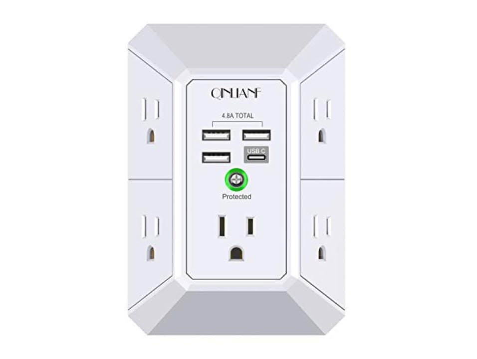 Not only does this gadget provide more space, but it has a surge-protection circuit to guard your devices from unexpected changes in power. The Qinliaf Extender also detects the kind of device plugged into it and provides the appropriate amount of power, preventing problems with over-voltage.