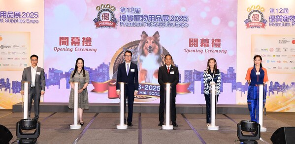 1."Premium Pet Supplies Expo 2025" Officially Opens. (From left to right) Mr. Kenneth Wong, Development Director of Life-Med Foundation Group Limited, Ms. Helena Chen, Senior Vice President, General Manager, Hong Kong & Macau, Mastercard Worldwide, Mr. Carl Wong, Chairman of Exhibition Group, Mr. Rex Li, Chairman of Hong Kong Pet Trade Association Limited, Ms. Betty Yau, PR of the Hong Kong Kennel Club and Deputy Director of Education and Miss Sharon Kwok, Ambassador for Endangered Species.