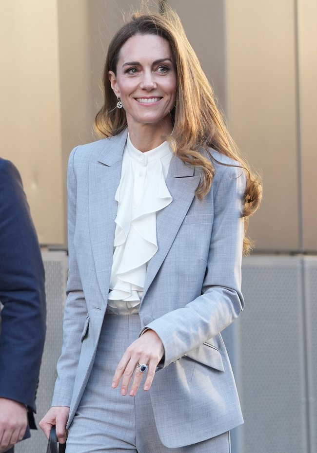 Catherine was also notably wearing a stack of four significant rings, which included her sapphire and diamond engagement ring — the same ring once worn by the late Princess Diana.