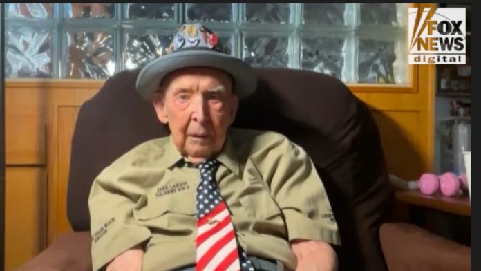 WWII veteran Jake Larson, 102, of California, shared his experiences of storming Omaha Beach on D-Day. (Fox News Digital)